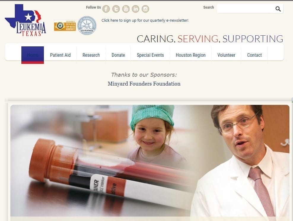 Leukemia Texaswebuadmin2019-06-05T15:46:24-05:00 Leukemia Texas CATEGORIES Graphic Design Things We Did Custom Website Design, Complete Site Overhaul About Leukemia Texas is an independent nonprofit corporation dedicated to fighting the life-threatening blood cancer of leukemia through the funding of leukemia research and patient aid in Texas. VIEW LIVE SITEBefore After